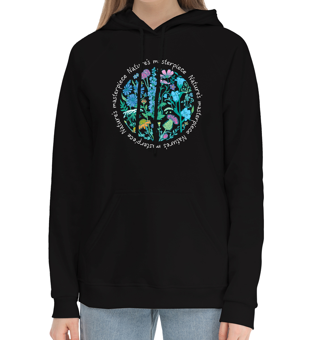 Женский хлопковый худи с принтом «Полевые цветы в круге»