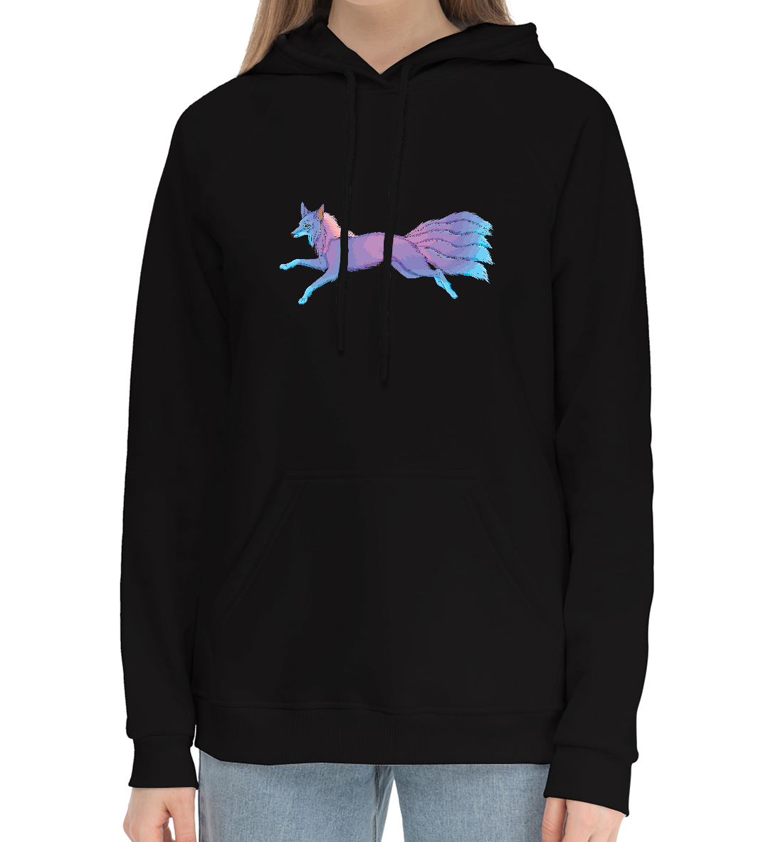 Женский хлопковый худи с принтом «Радужный многохвостый лис»