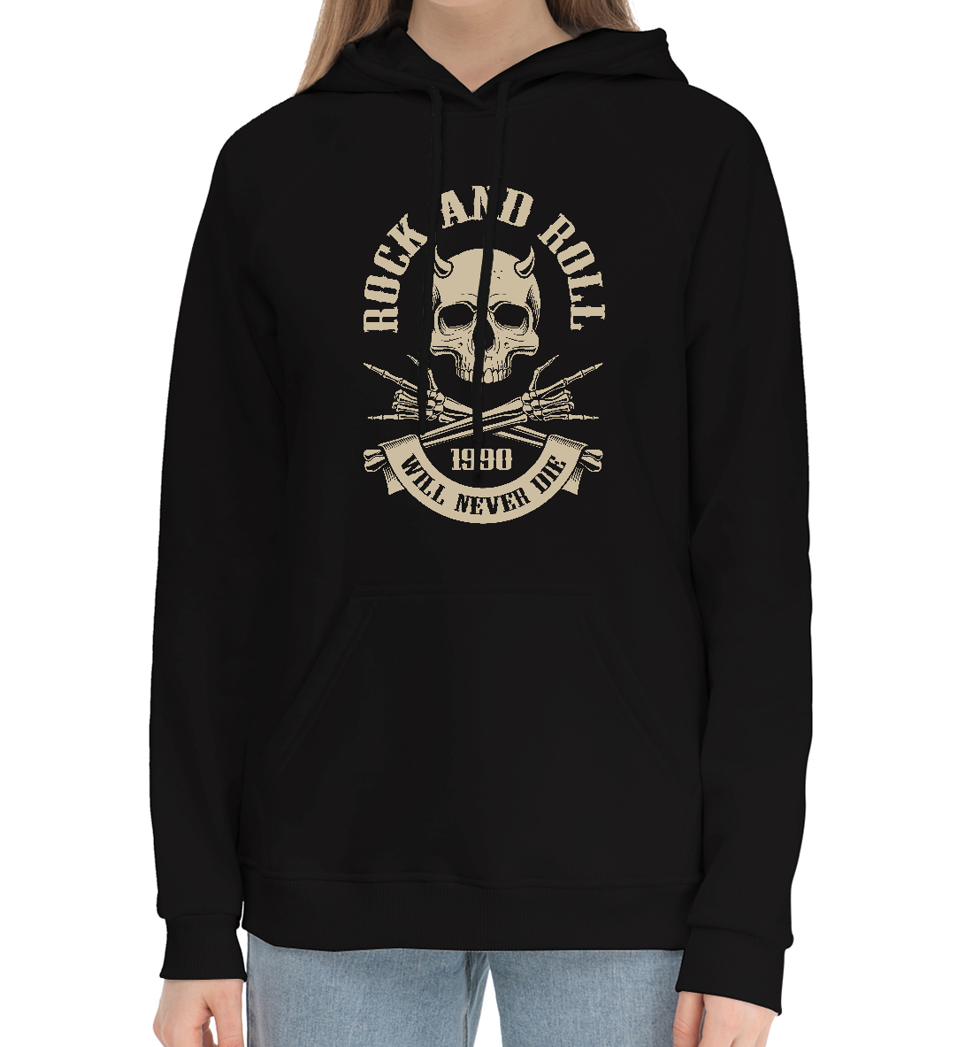 Женский хлопковый худи с принтом «Rock N Roll - skull»
