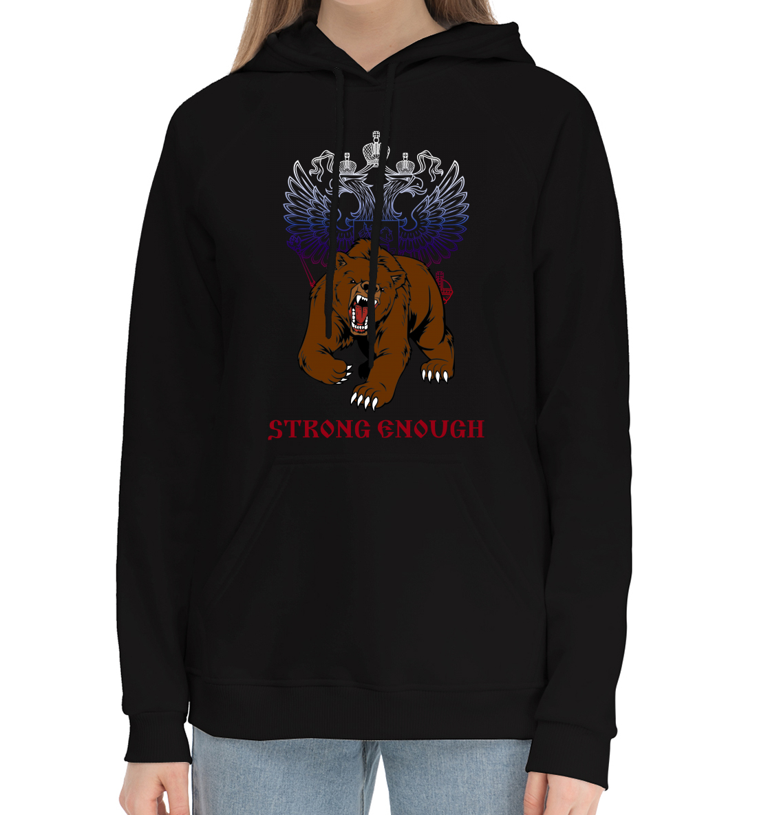 Женский хлопковый худи с принтом «Russia - strong enough»