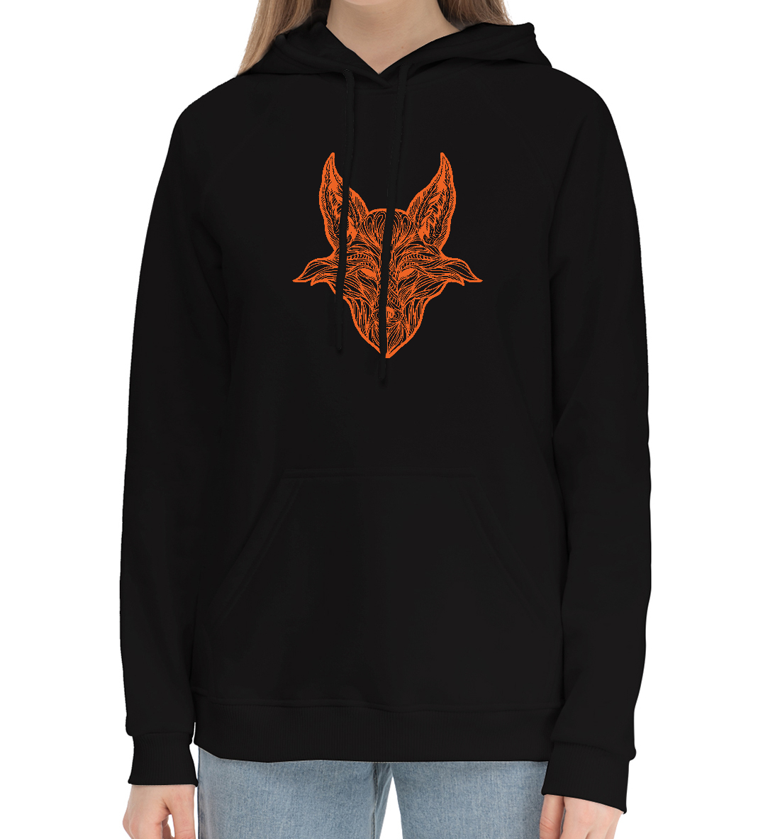 Женский хлопковый худи с принтом «Рыжая лиса с узорами»