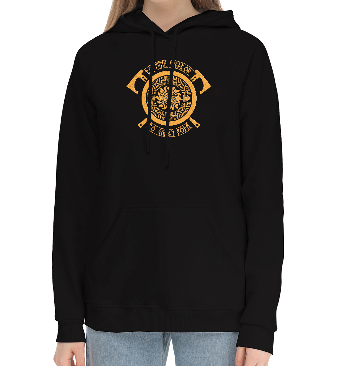 Женский хлопковый худи с принтом «Символ воина Громовик»