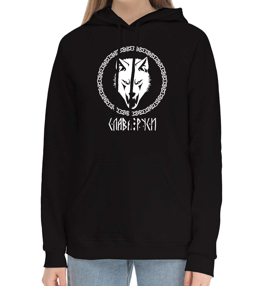 Женский хлопковый худи с принтом «Слава Руси»