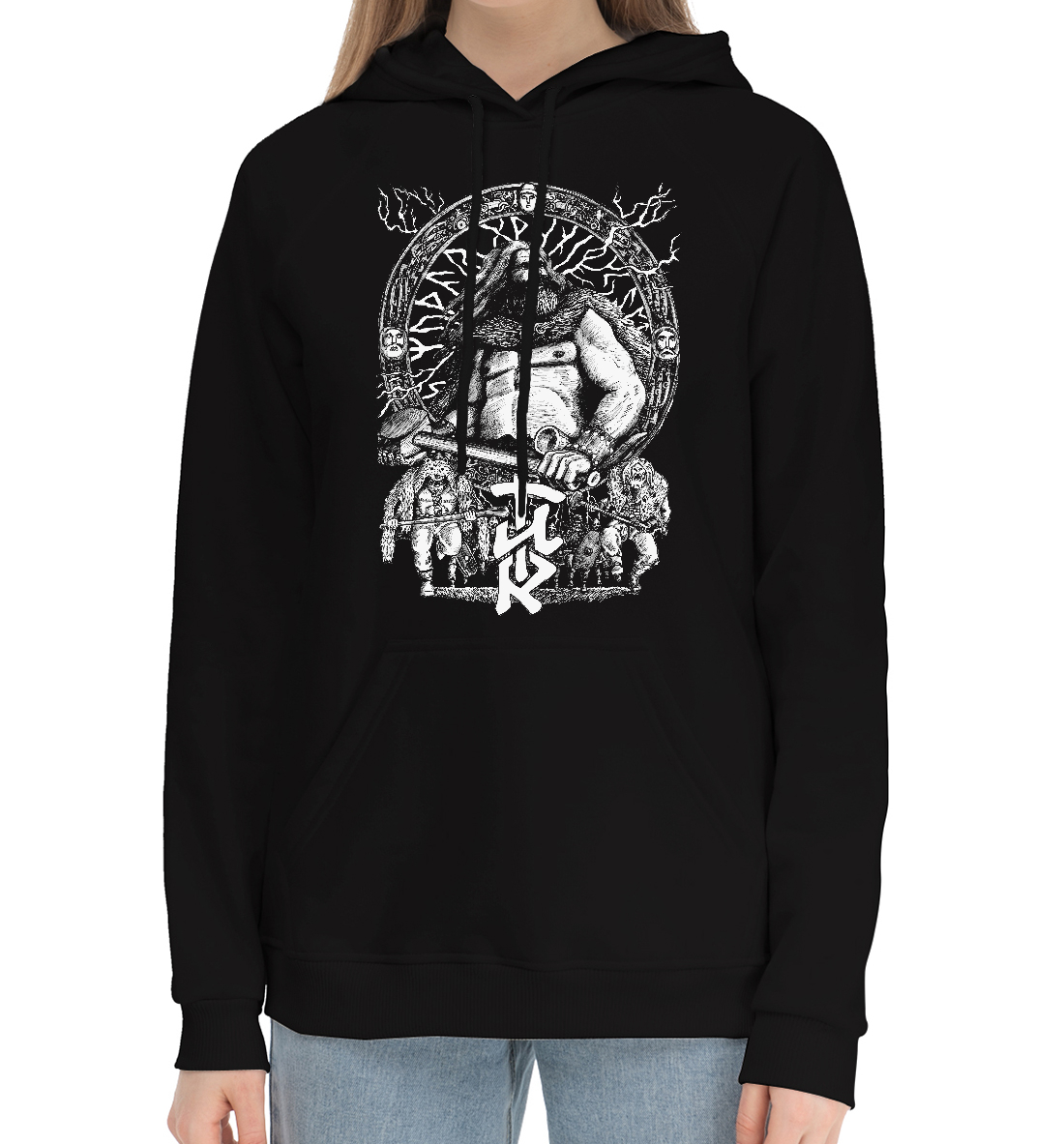 Женский хлопковый худи с принтом «Славянские Боги Перун и Велес»