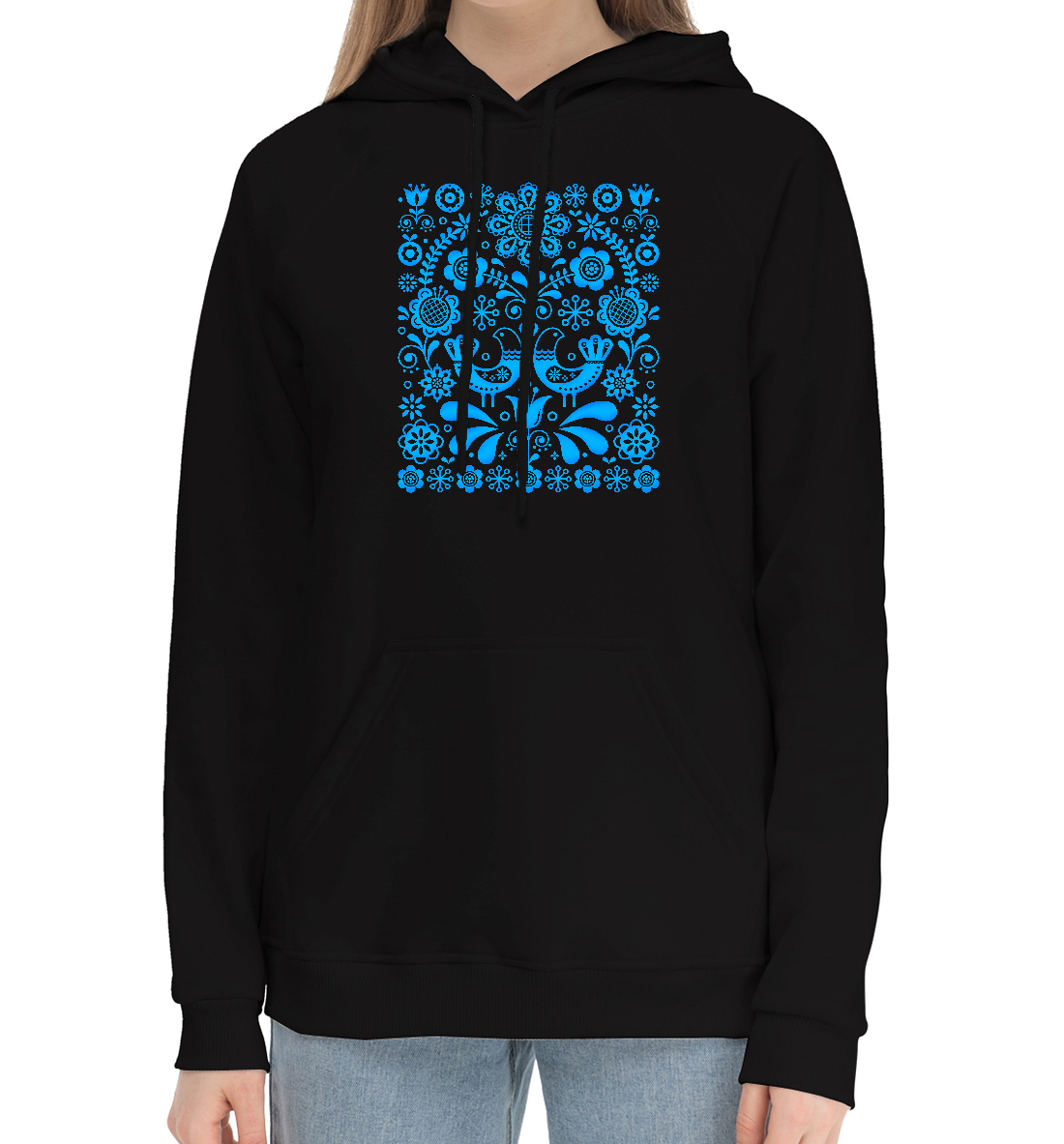 Женский хлопковый худи с принтом «Славянский узор - птицы»