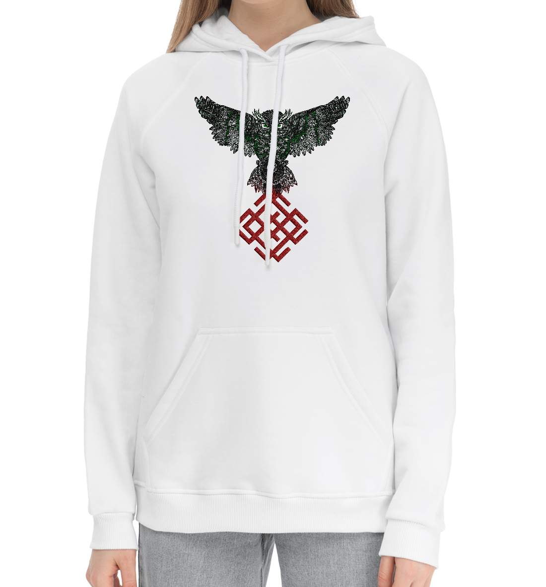 Женский хлопковый худи с принтом «Сова с символом Молвинец»