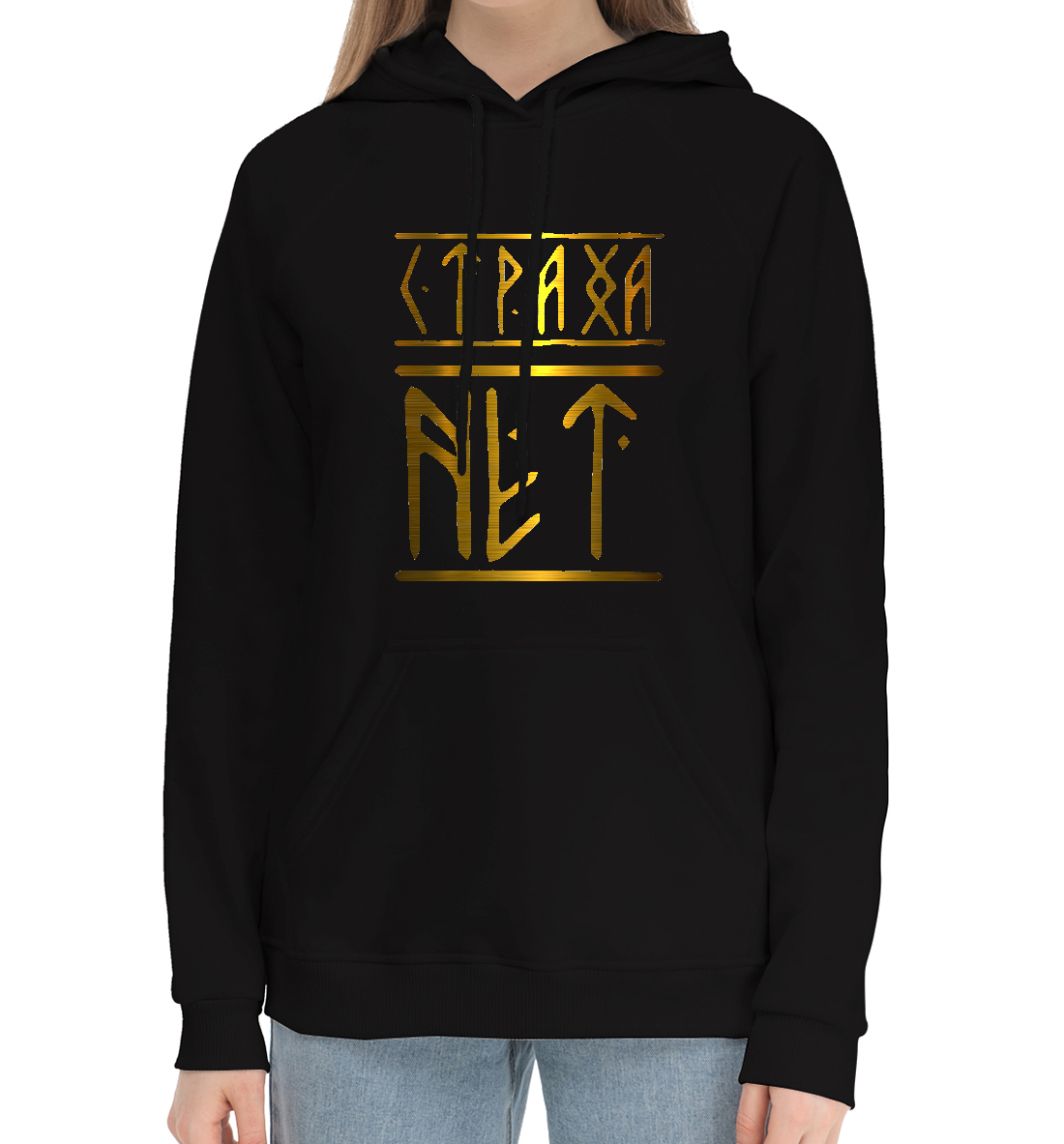 Женский хлопковый худи с принтом «Страха нет славянский шрифт»