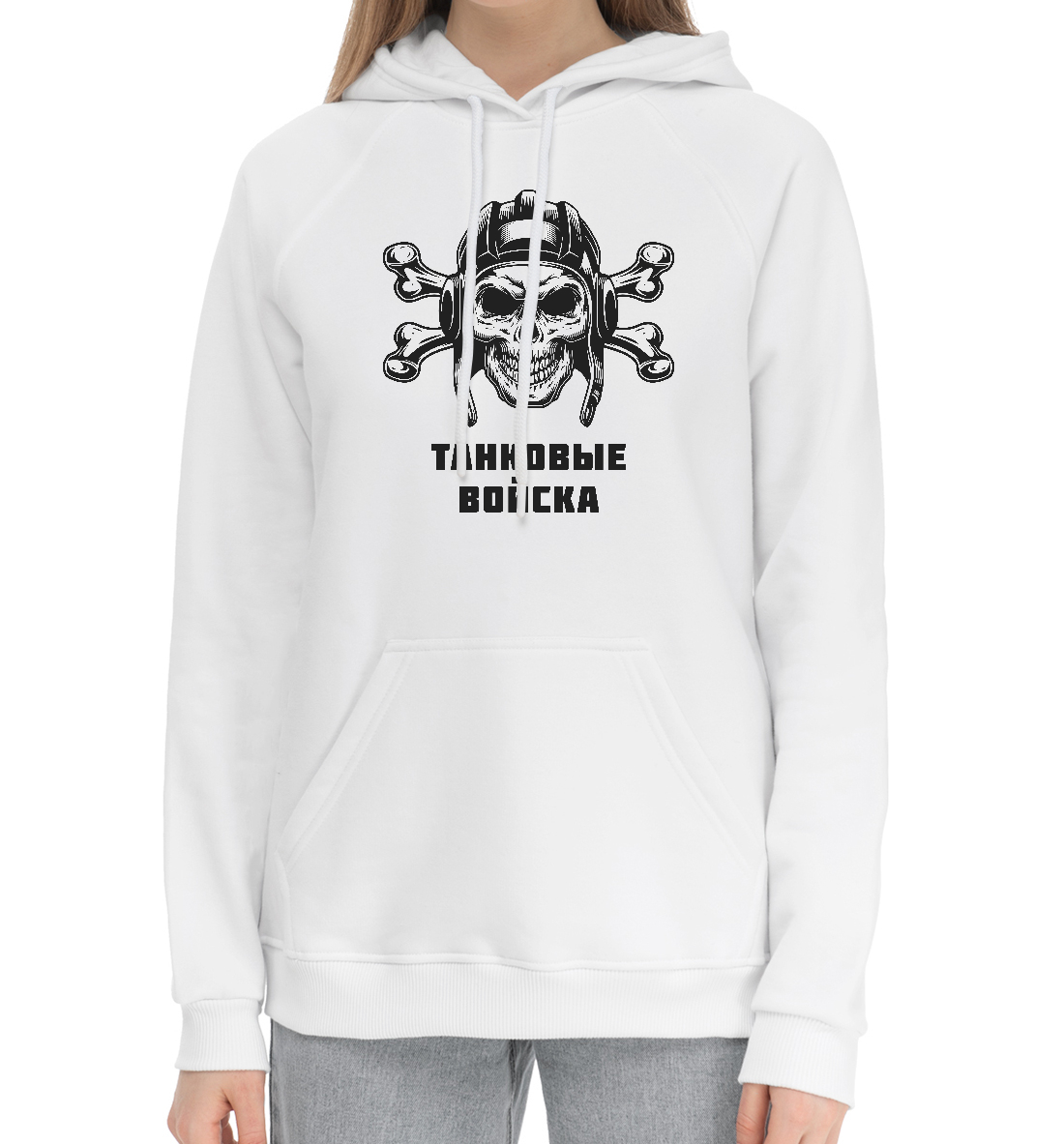 Женский хлопковый худи с принтом «ТАНКОВЫЕ ВОЙСКА (Череп и Кости)»