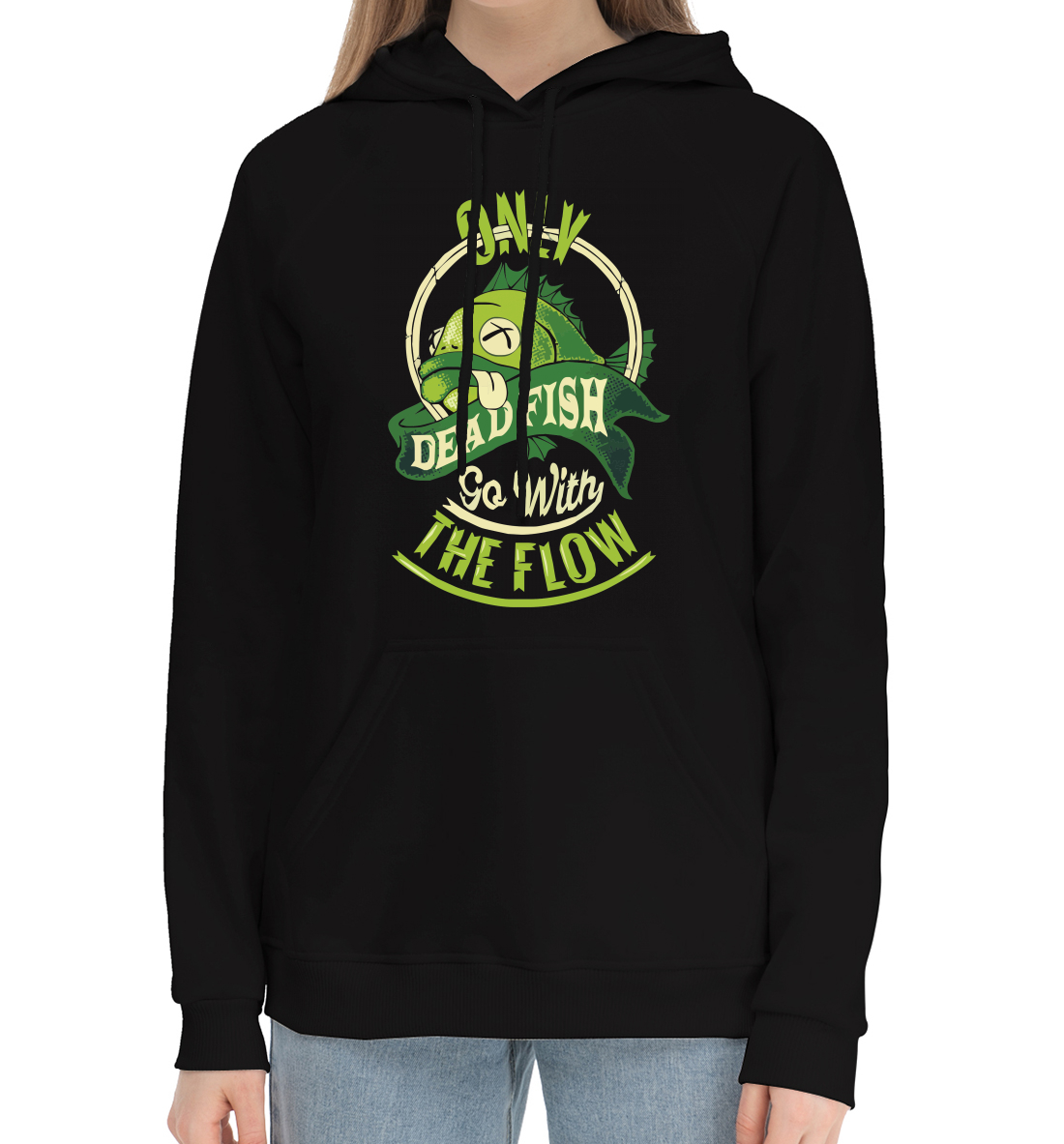 Женский хлопковый худи с принтом «Только дохлая рыба»