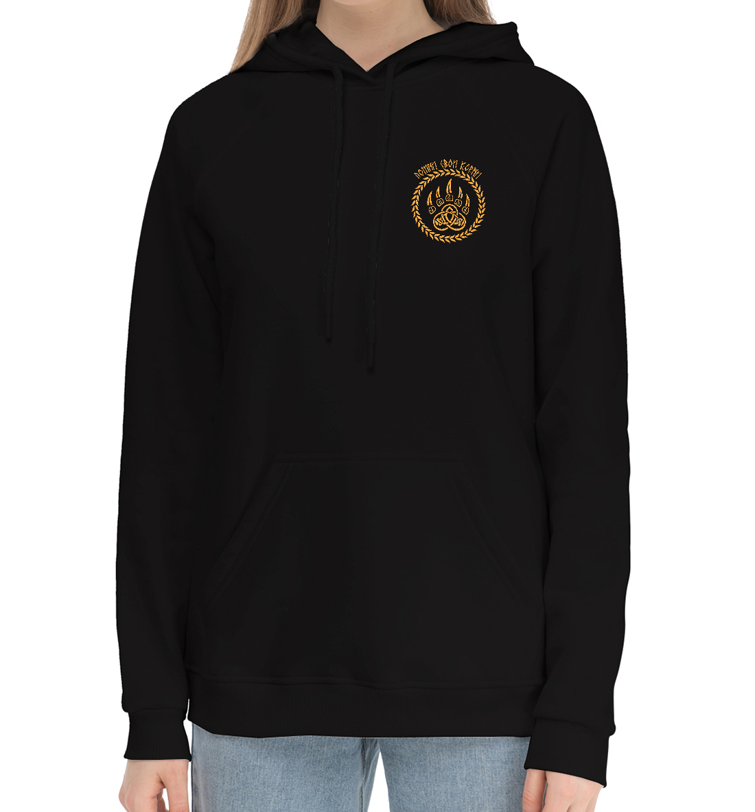 Женский хлопковый худи с принтом «Велес (Помни корни)»