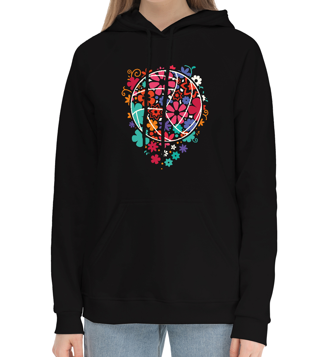 Женский хлопковый худи с принтом «Volleyball Flowers»