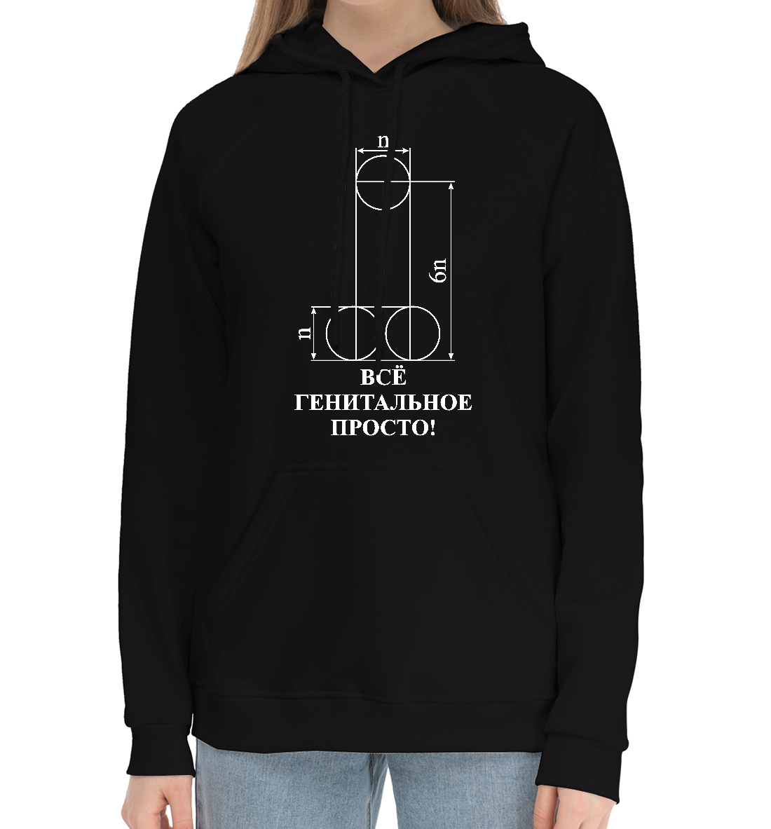 Женский хлопковый худи с принтом «Все генитальное просто»