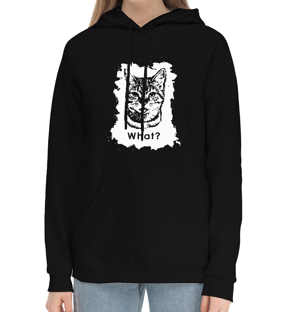 Женский хлопковый худи с принтом «What?»