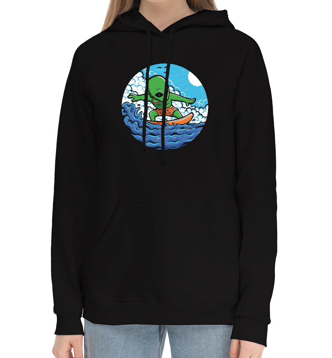 Женский хлопковый худи с принтом «Зеленый серфер»