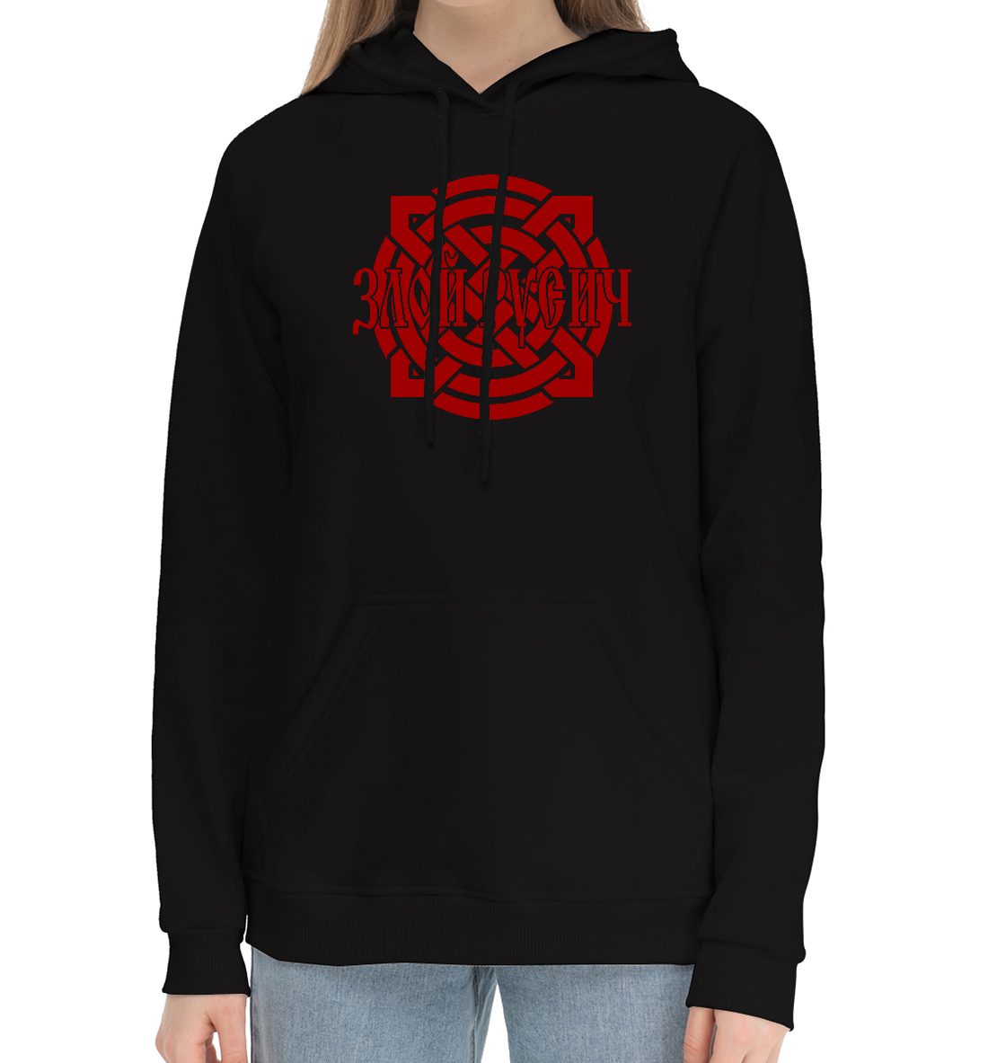 Женский хлопковый худи с принтом «Злой русич в символе воина»