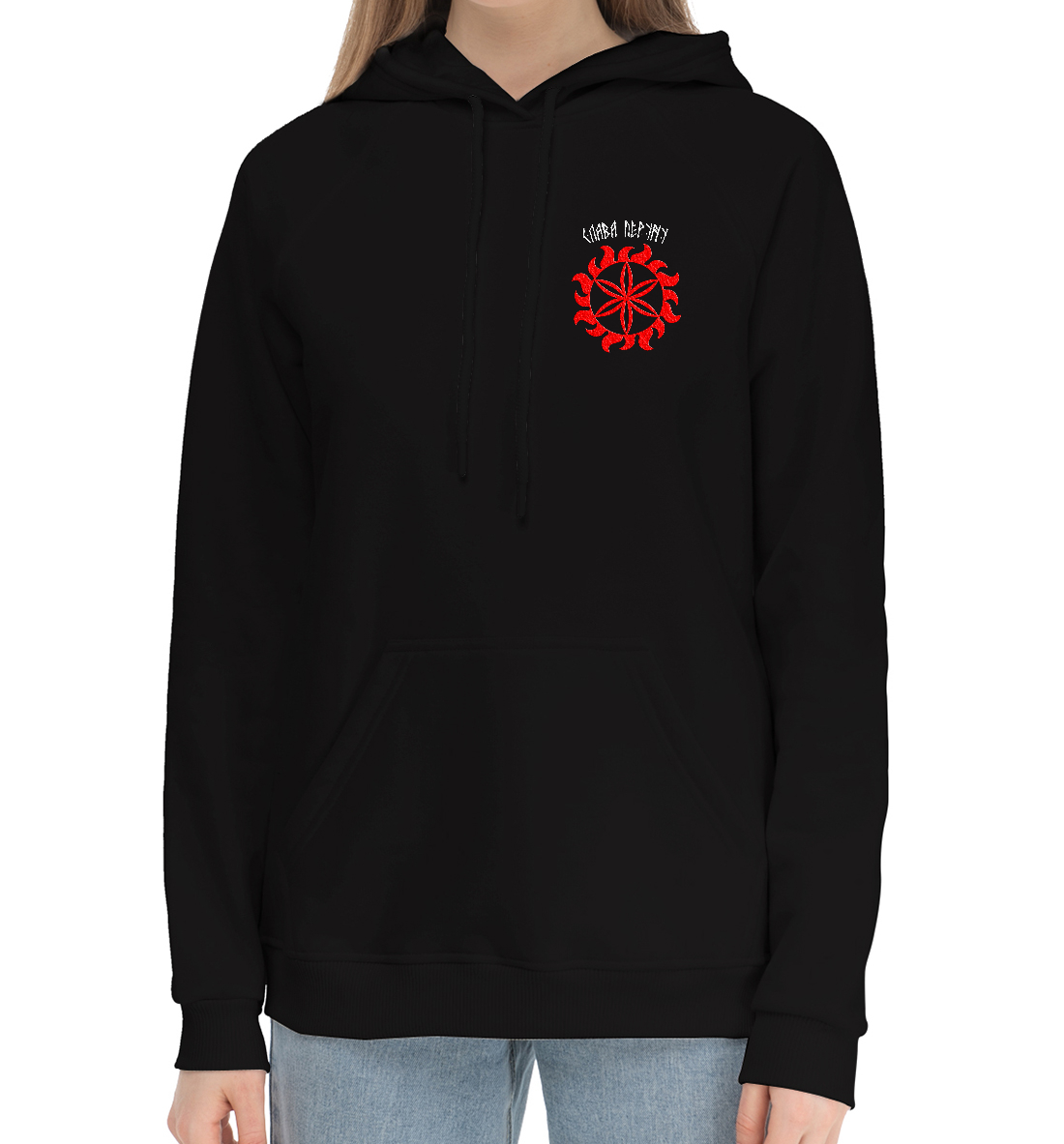 Женский хлопковый худи с принтом «Звезда Перуна/Слава Перуну»