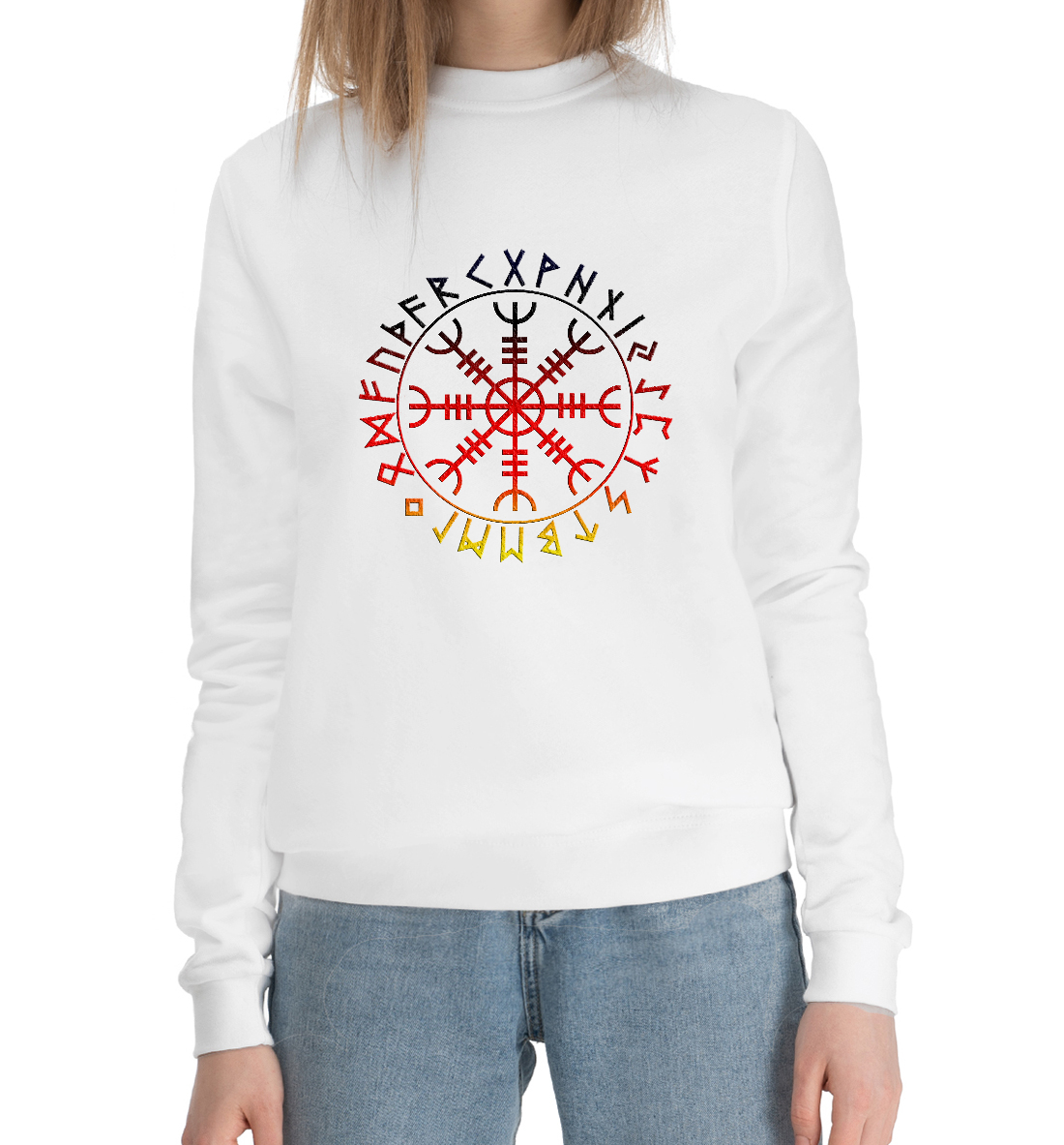 Женский хлопковый свитшот с принтом «Агисхьяльм в круге рун»