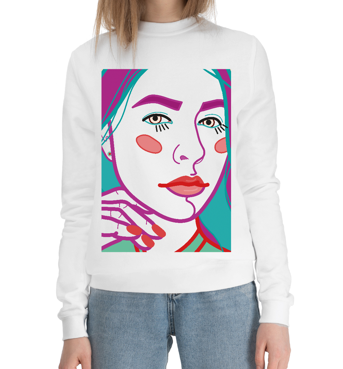 Женский хлопковый свитшот с принтом «Арт портрет с женским лицом крупным план»