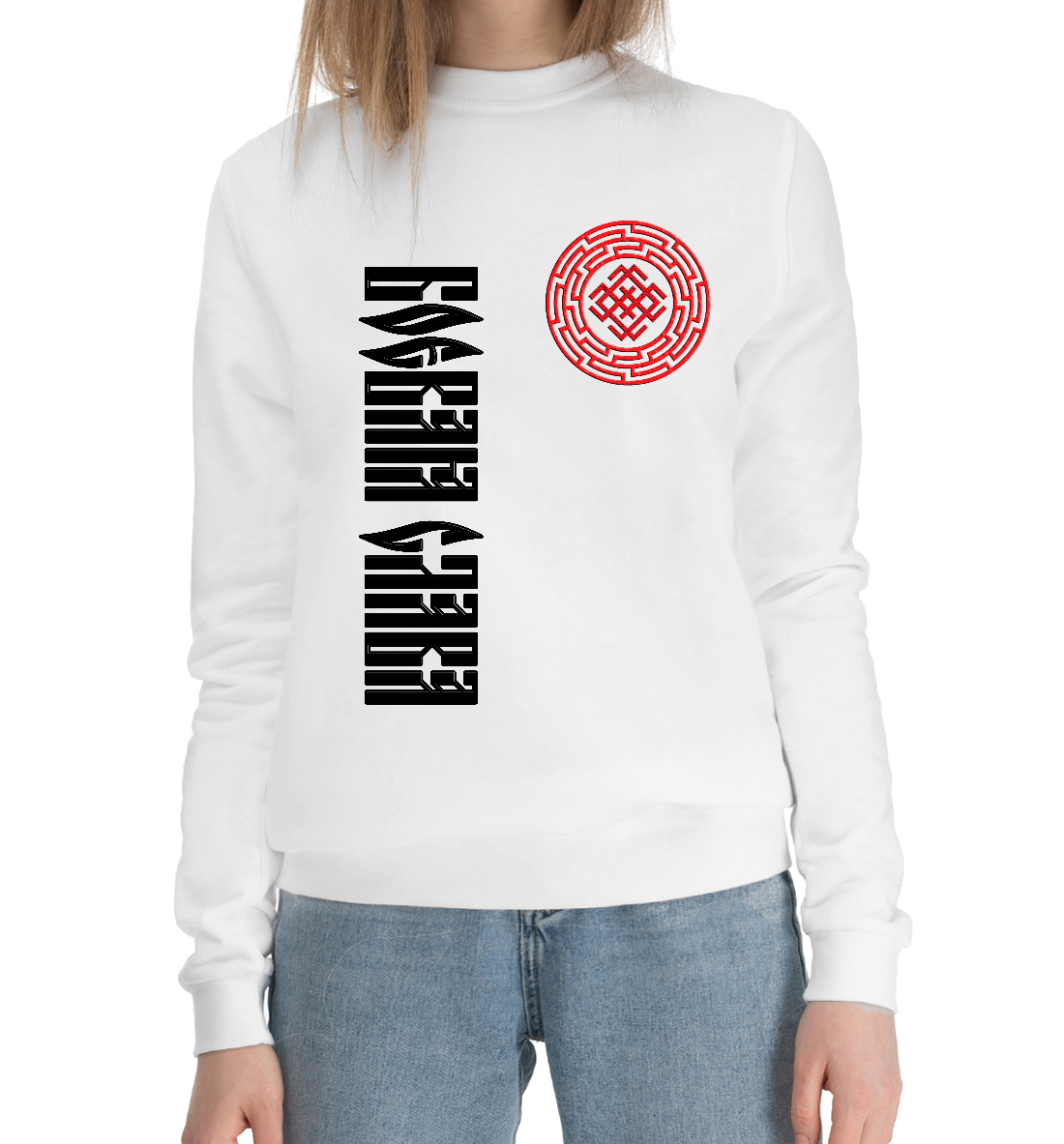 Женский хлопковый свитшот с принтом «Боевая слава/Знак Валькирии»