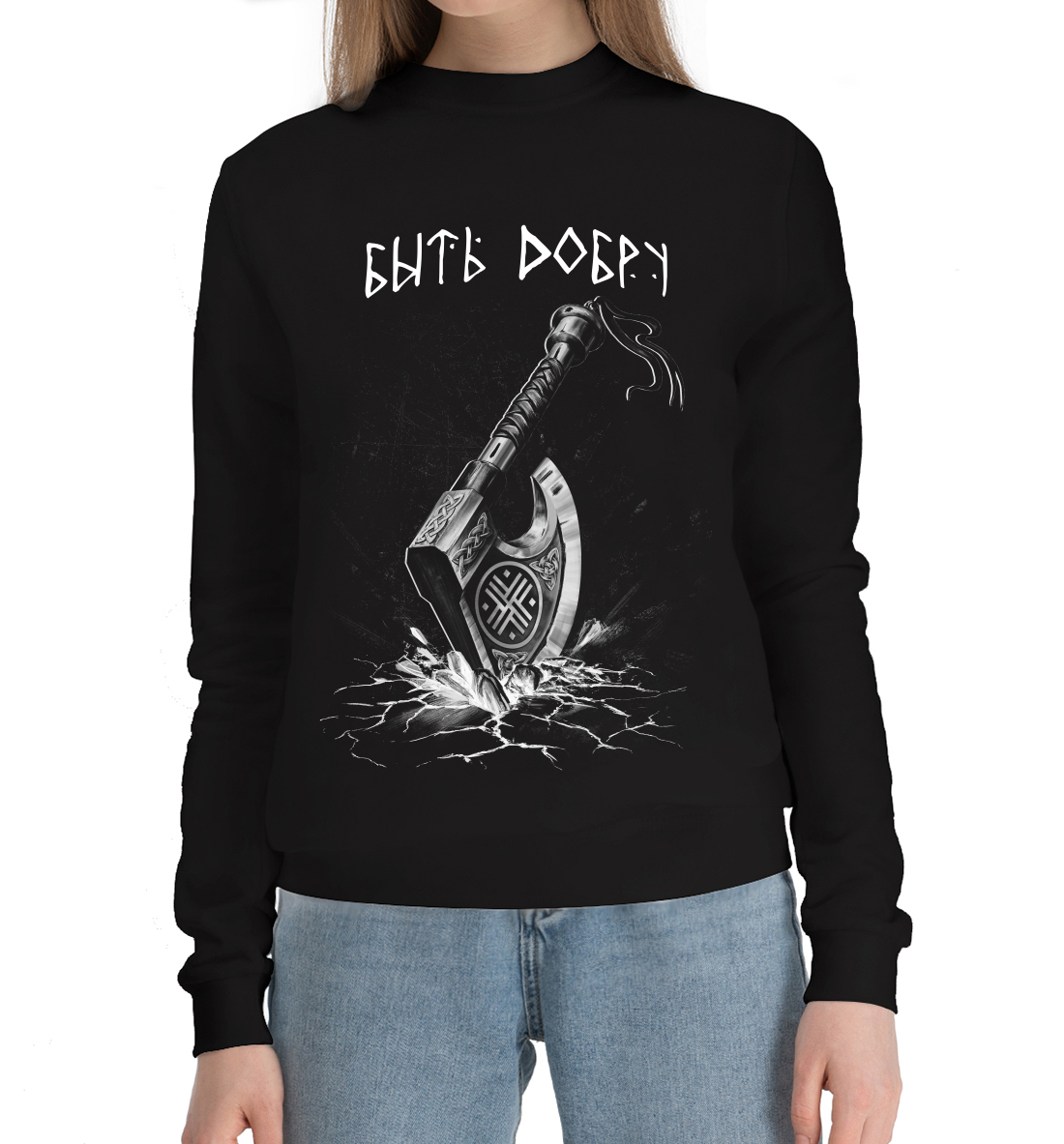 Женский хлопковый свитшот с принтом «Боевой славянский топор»