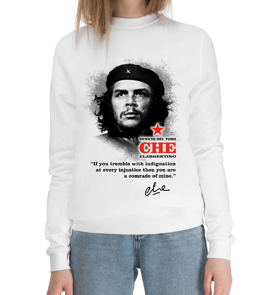 Женский хлопковый свитшот с принтом «Che (белый фон)»