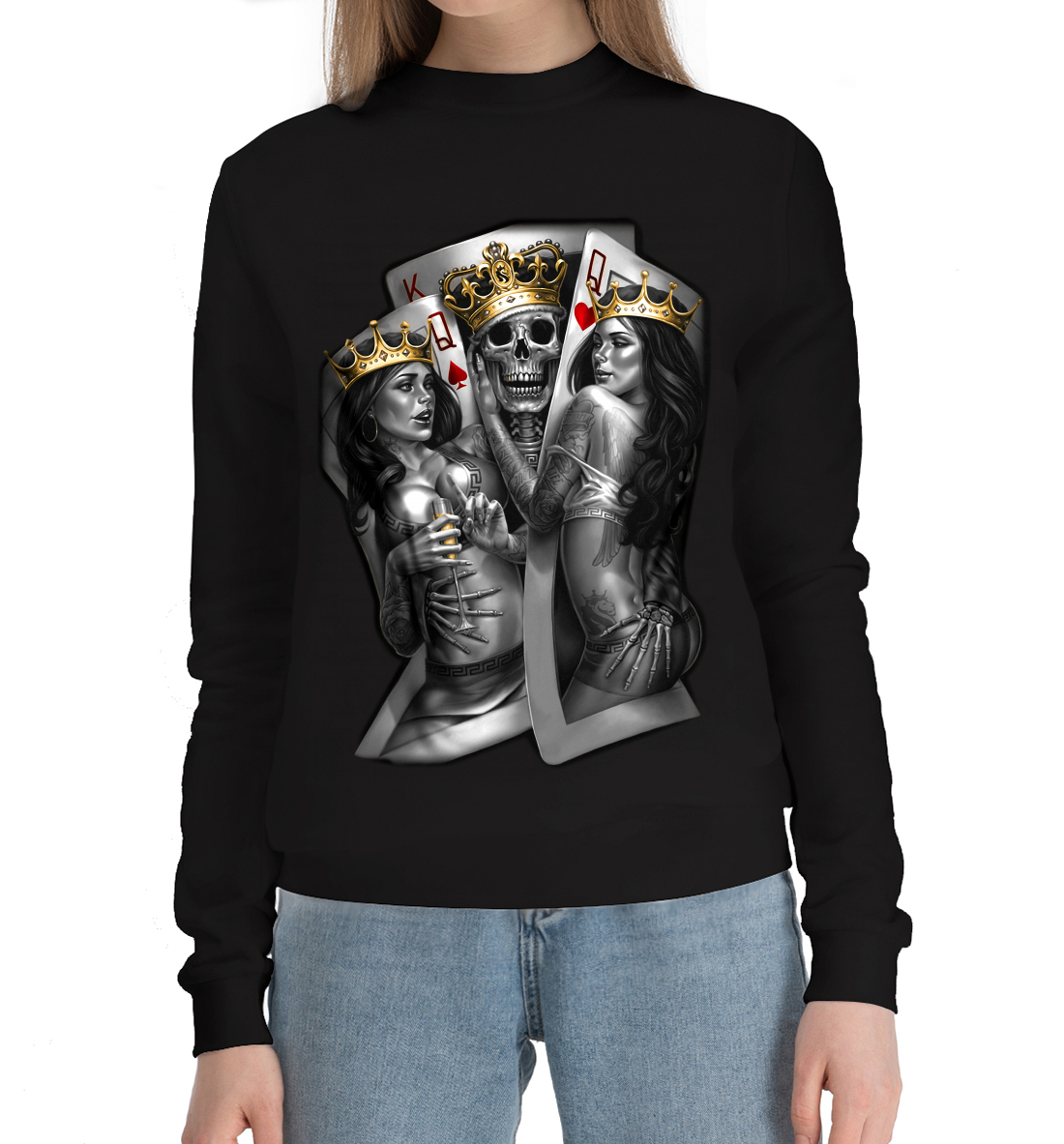 Женский хлопковый свитшот с принтом «Череп-джокер»