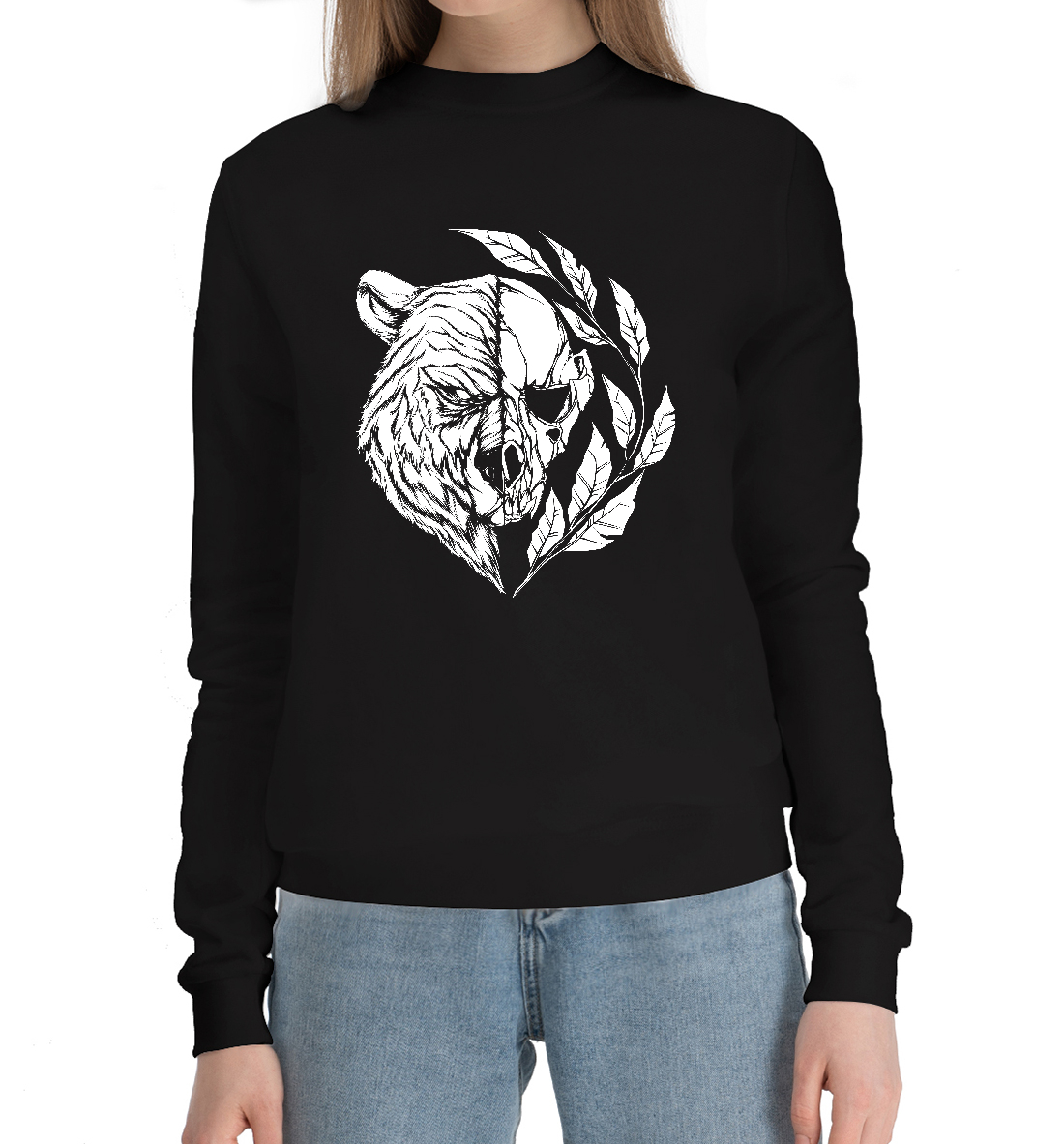 Женский хлопковый свитшот с принтом «Череп медведя»
