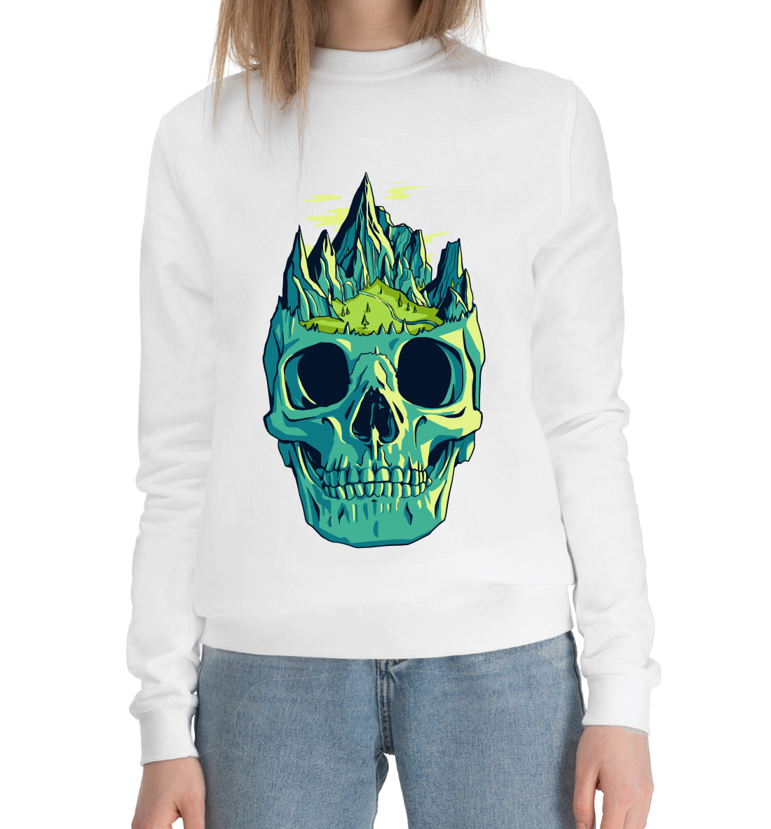 Женский хлопковый свитшот с принтом «Череп с Горами»