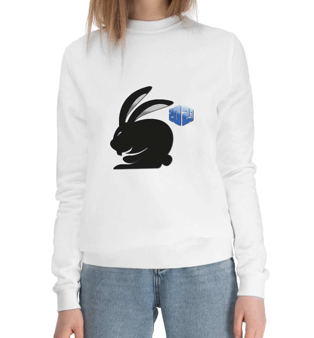 Женский хлопковый свитшот с принтом «Черный кролик 2023»