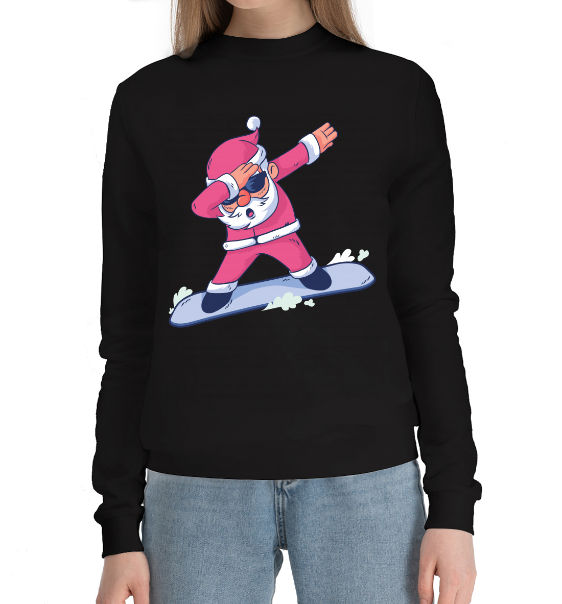 Женский хлопковый свитшот с принтом «Дед Мороз на Сноуборде»