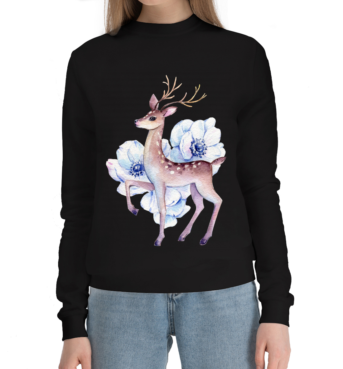 Женский хлопковый свитшот с принтом «Deer and flowers»