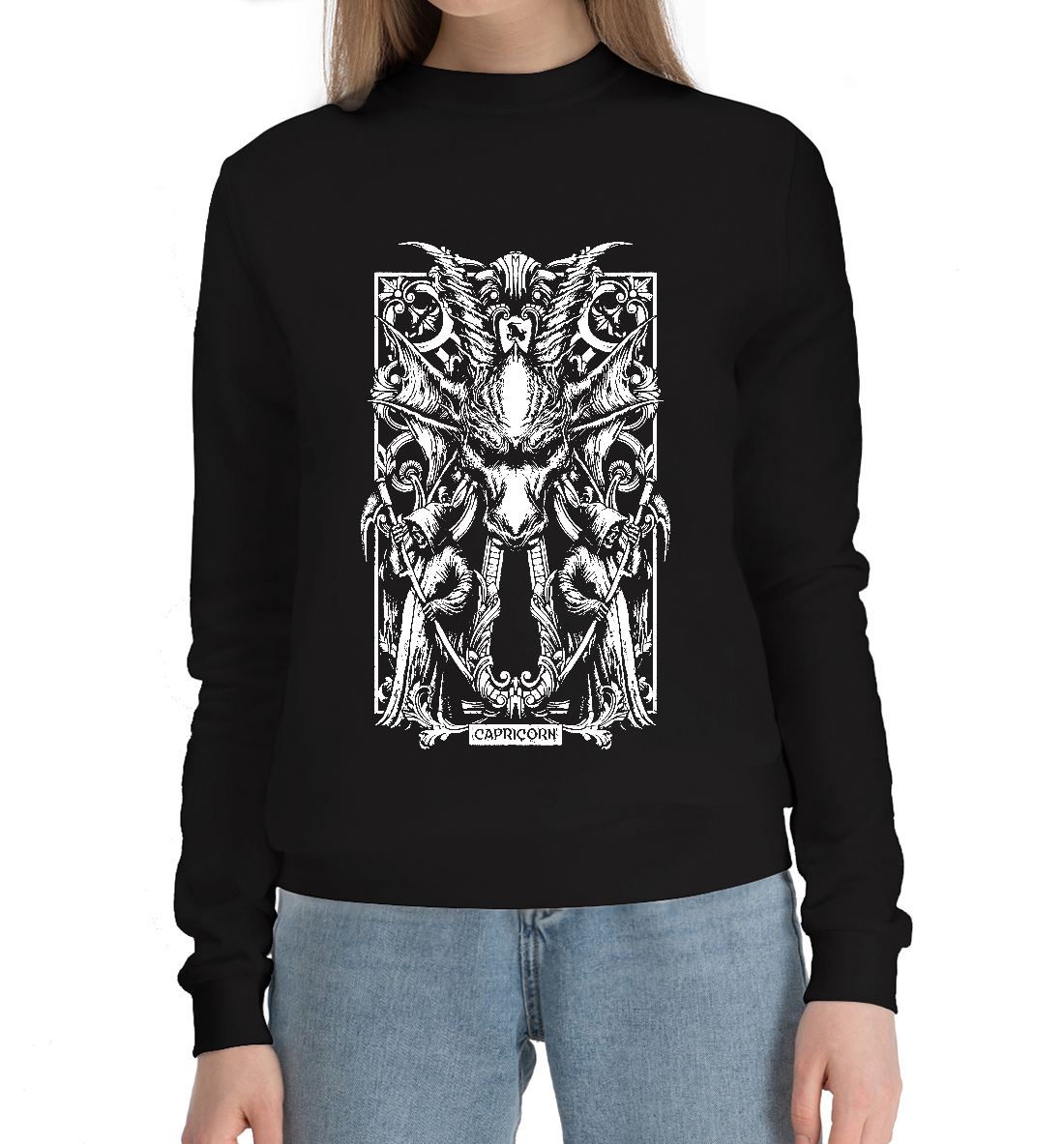 Женский хлопковый свитшот с принтом «Демонический козерог»