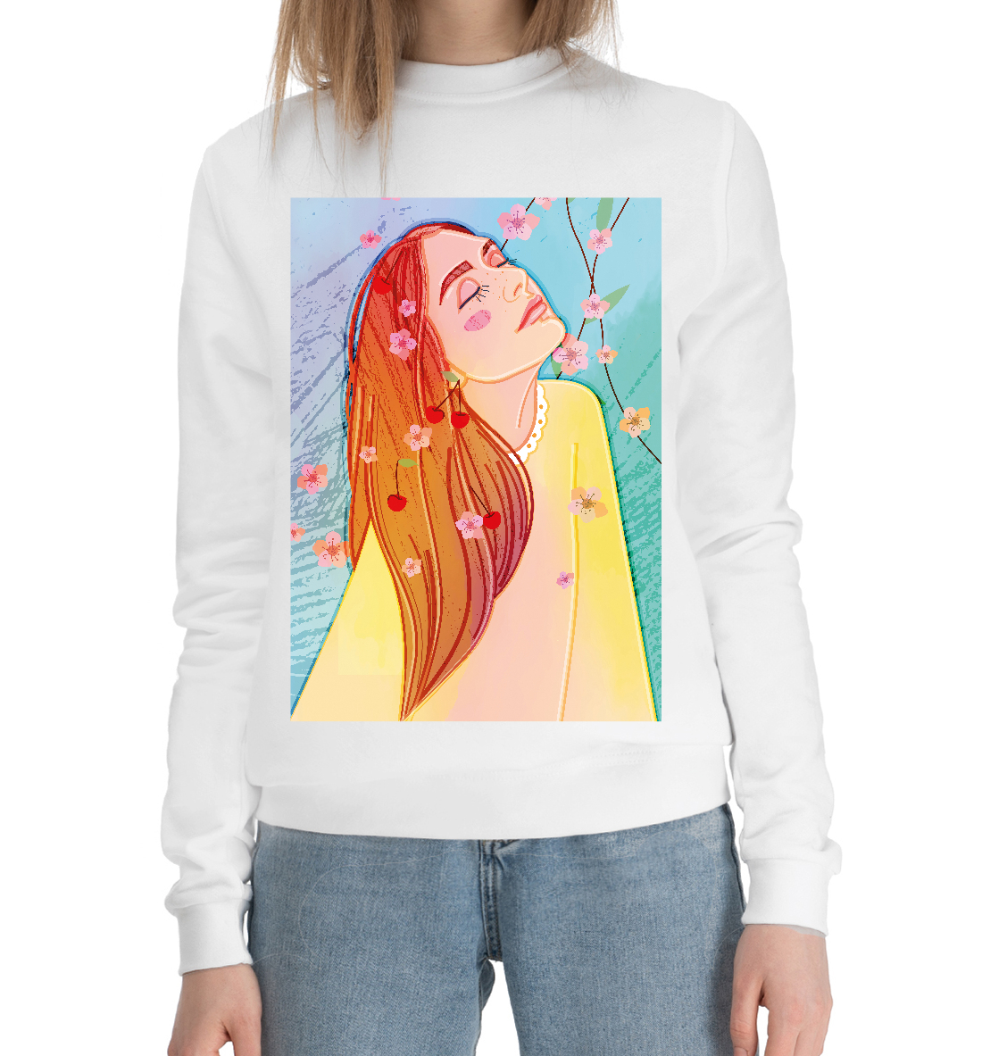 Женский хлопковый свитшот с принтом «Девушка с закрытыми глазами в цветах»