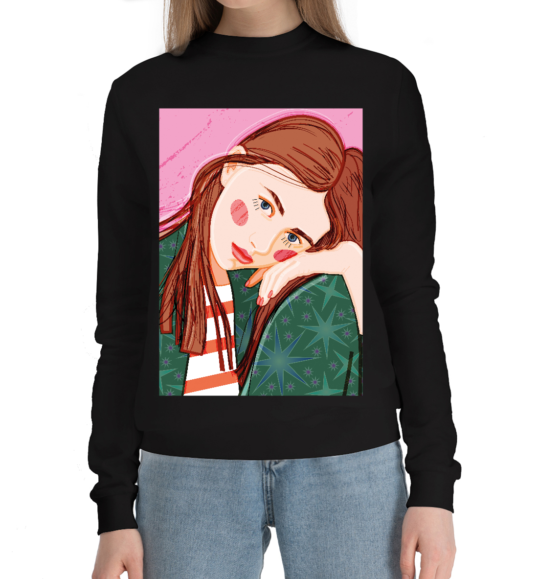 Женский хлопковый свитшот с принтом «Девушка в зелёном платье»