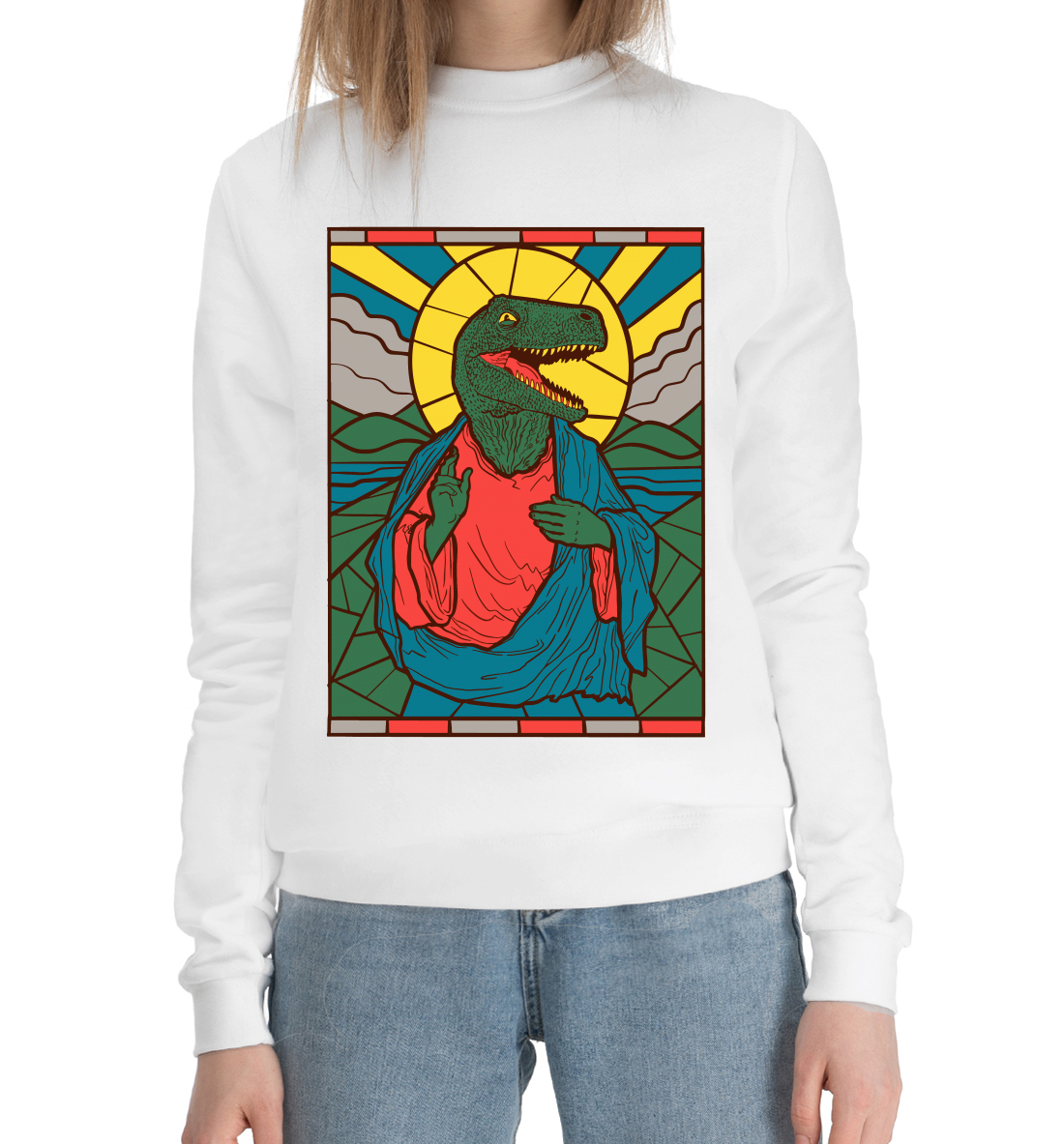 Женский хлопковый свитшот с принтом «Dino Jesus»