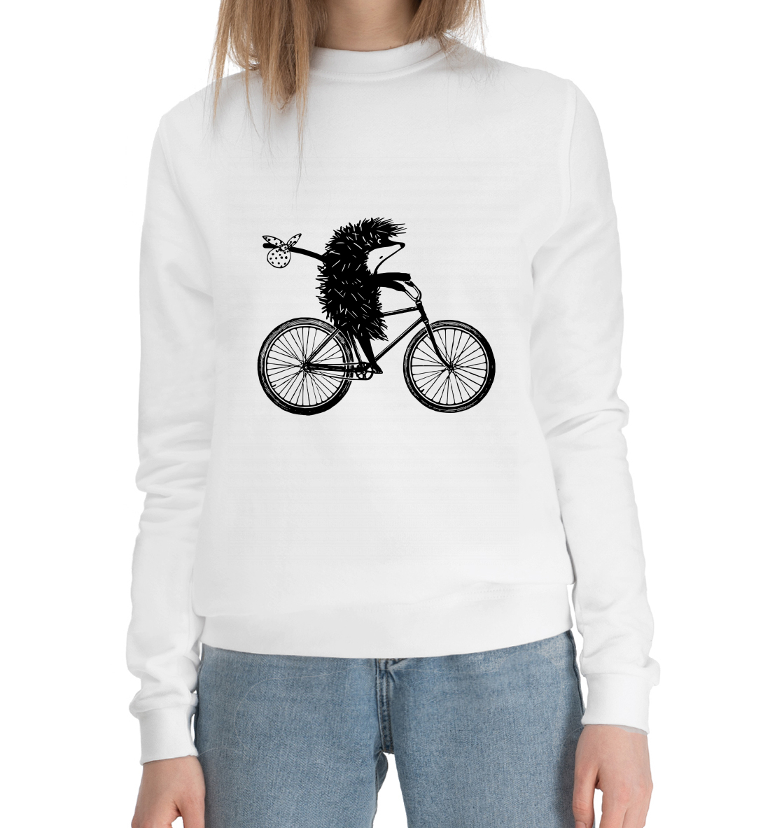 Женский хлопковый свитшот с принтом «Ежик на велосипеде»