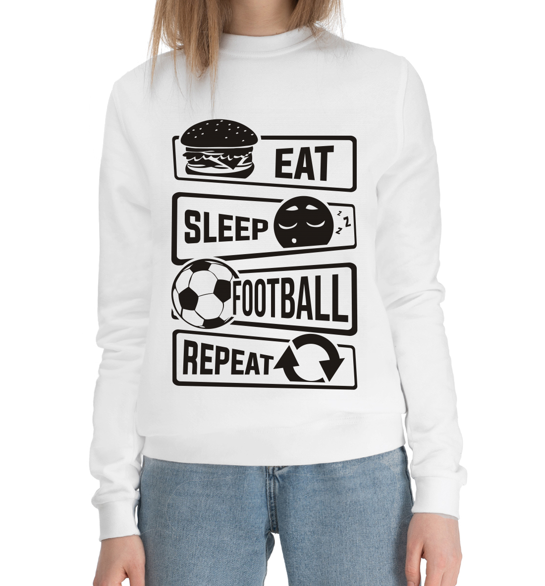 Женский хлопковый свитшот с принтом «Есть, спать, футбол»