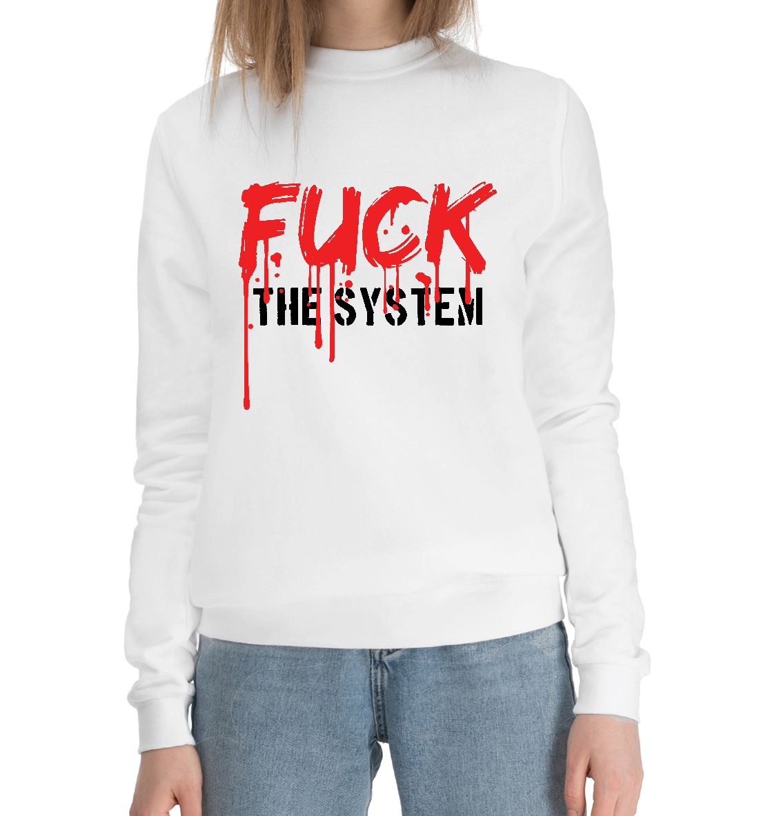 Женский хлопковый свитшот с принтом «Fuck the System (подтеки)»