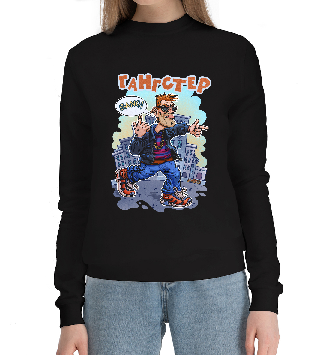 Женский хлопковый свитшот с принтом «Гангстер идет по городу»