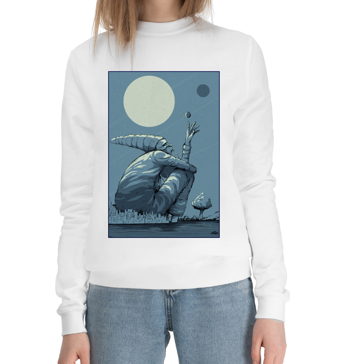 Женский хлопковый свитшот с принтом «Гном и Луна»