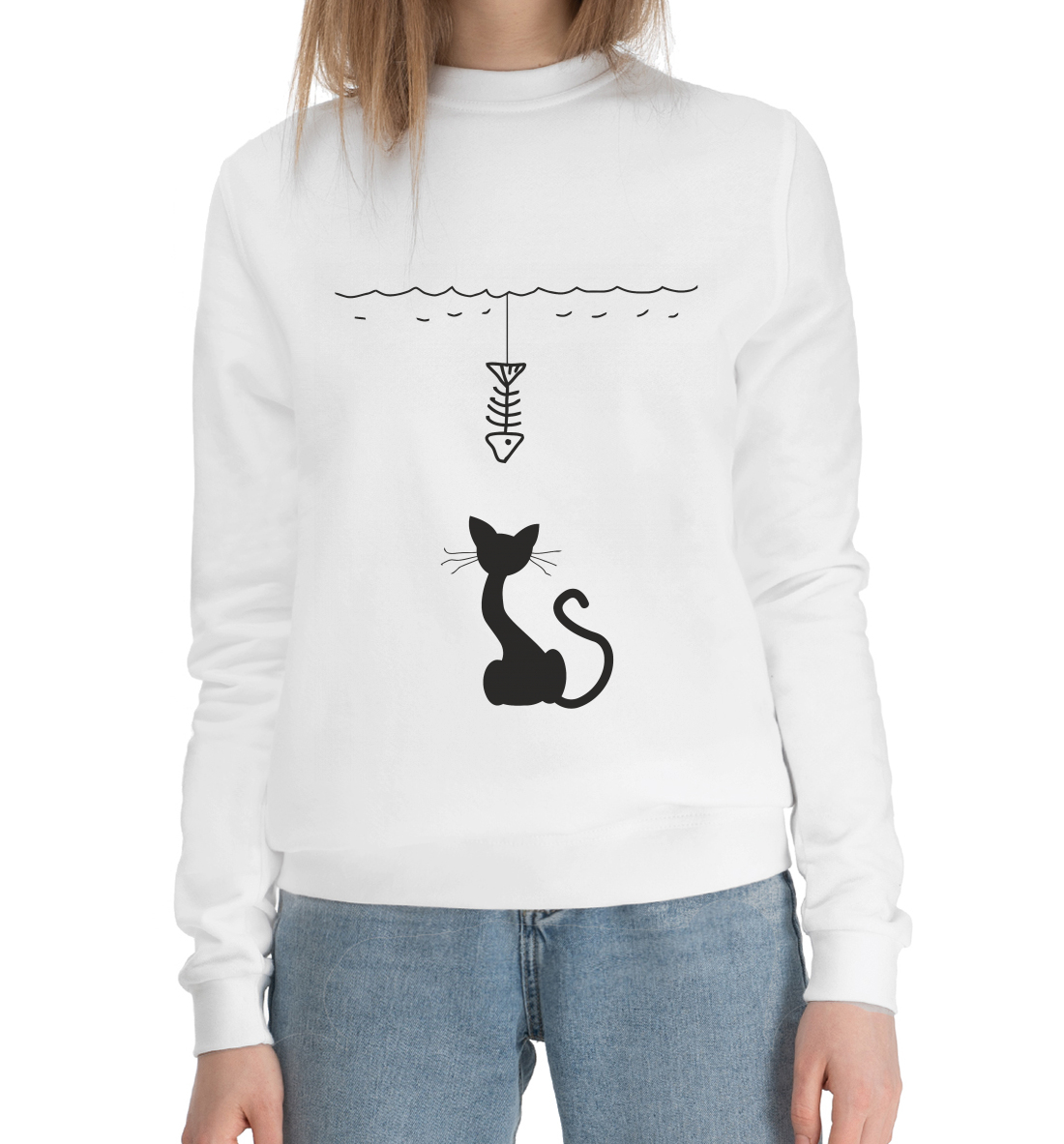 Женский хлопковый свитшот с принтом «Голодный котик»