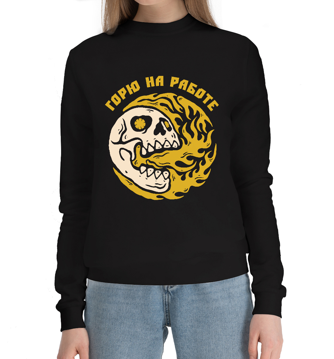 Женский хлопковый свитшот с принтом «Горю на работе»