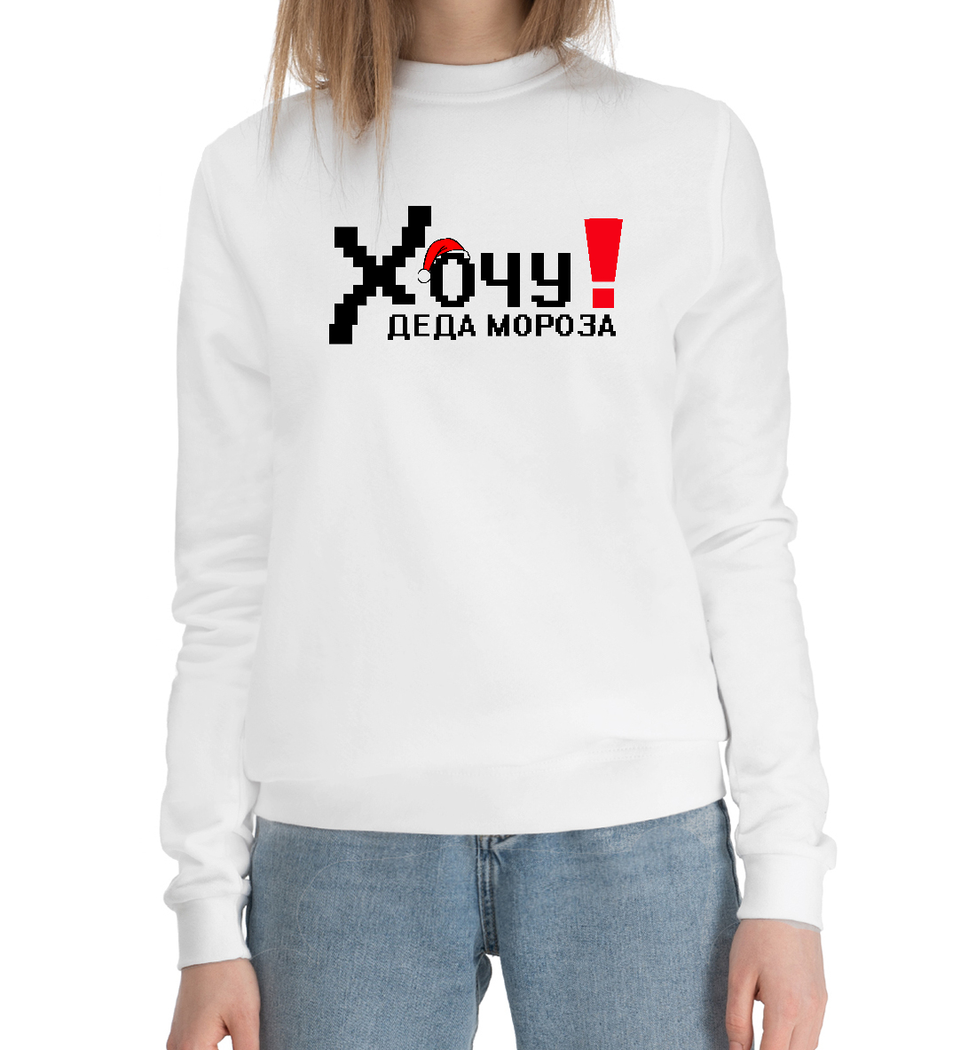 Женский хлопковый свитшот с принтом «Хочу деда Мороза»