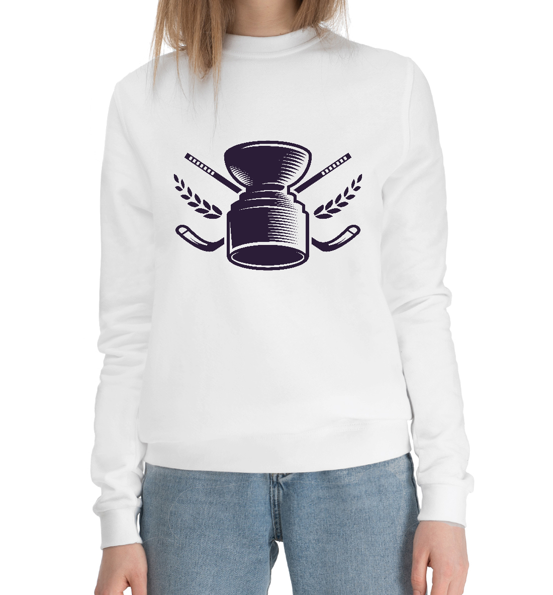 Женский хлопковый свитшот с принтом «Хоккейный кубок с клюшками»