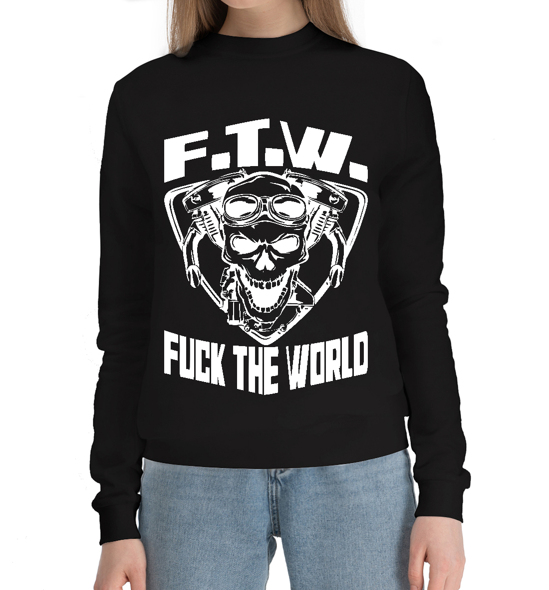 Женский хлопковый свитшот с принтом «К чёрту весь мир!»