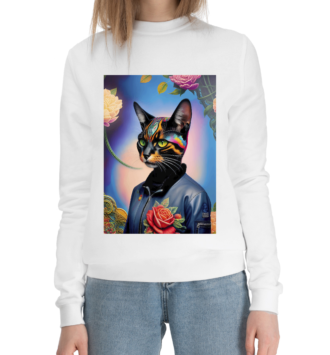 Женский хлопковый свитшот с принтом «Кошка модница»