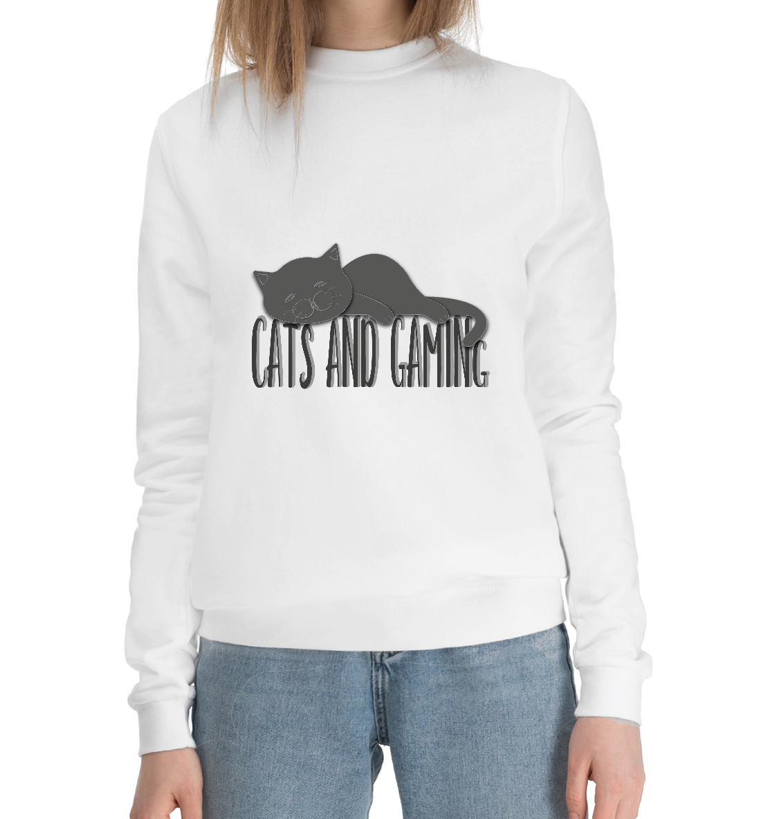 Женский хлопковый свитшот с принтом «Кот и игры»