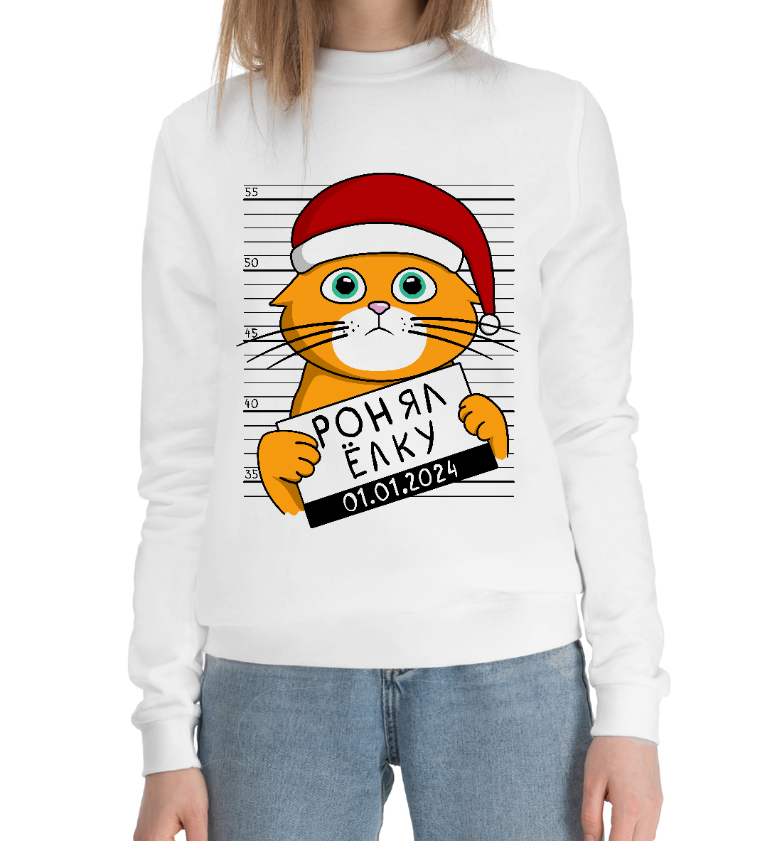 Женский хлопковый свитшот с принтом «Кот ронял ёлку»