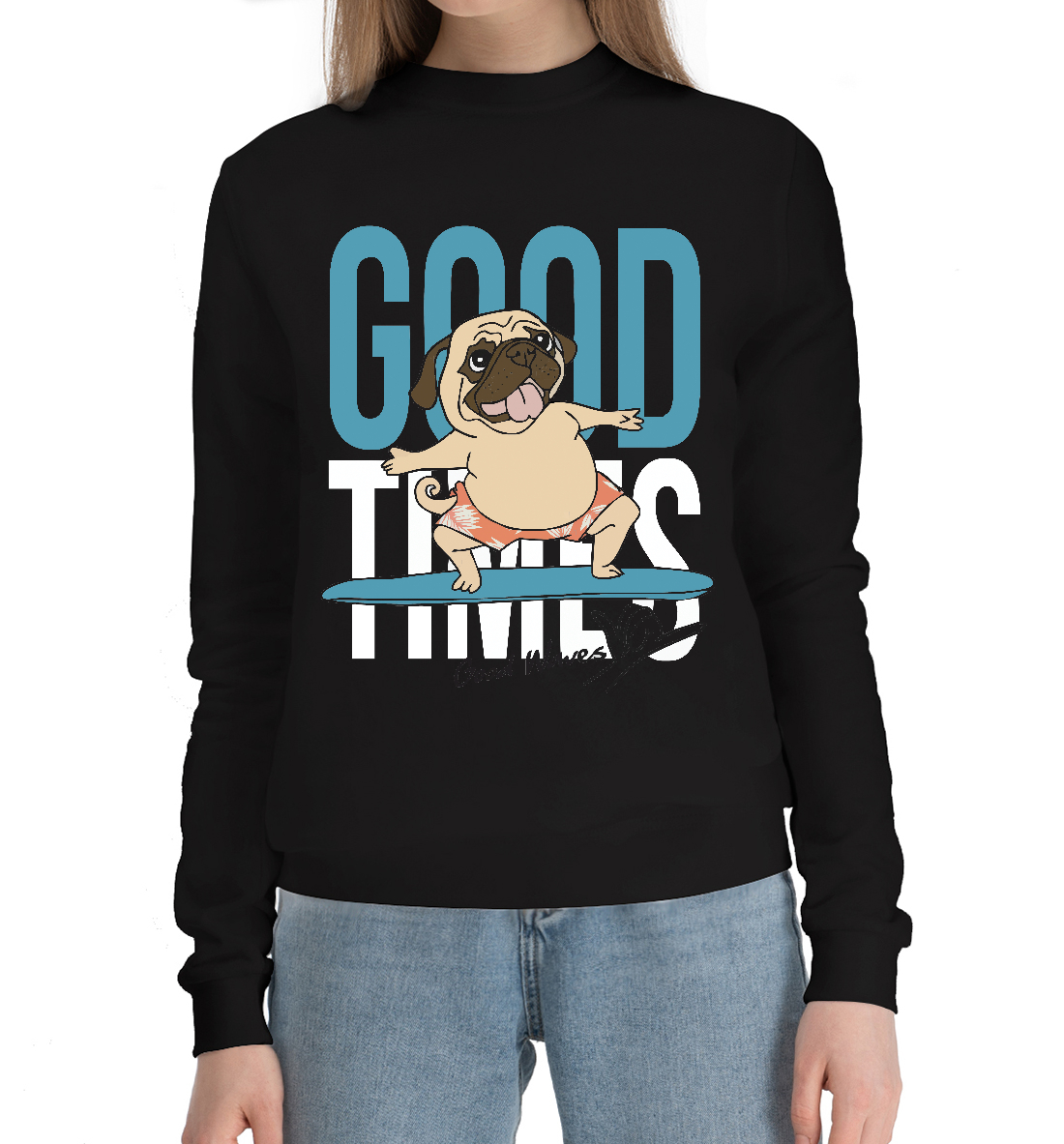 Женский хлопковый свитшот с принтом «Крутой Мопс»