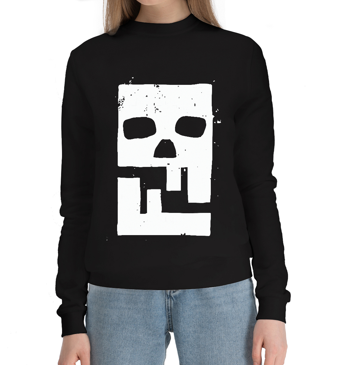 Женский хлопковый свитшот с принтом «Квадратный череп»
